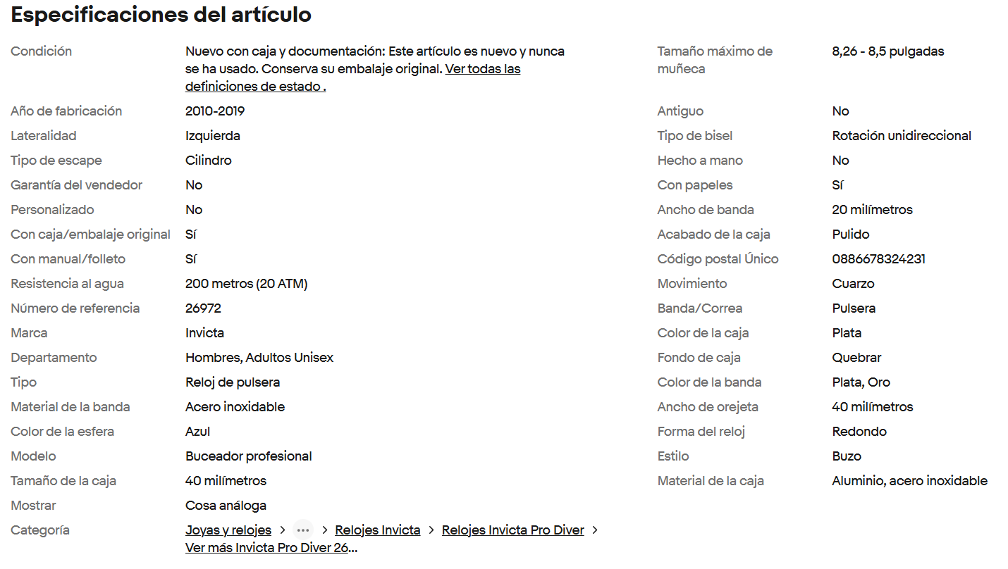 • Pulsera: acero inoxidable (acentos de acero y oro de dos tonos en muchos anuncios) y 20 mm de ancho. 