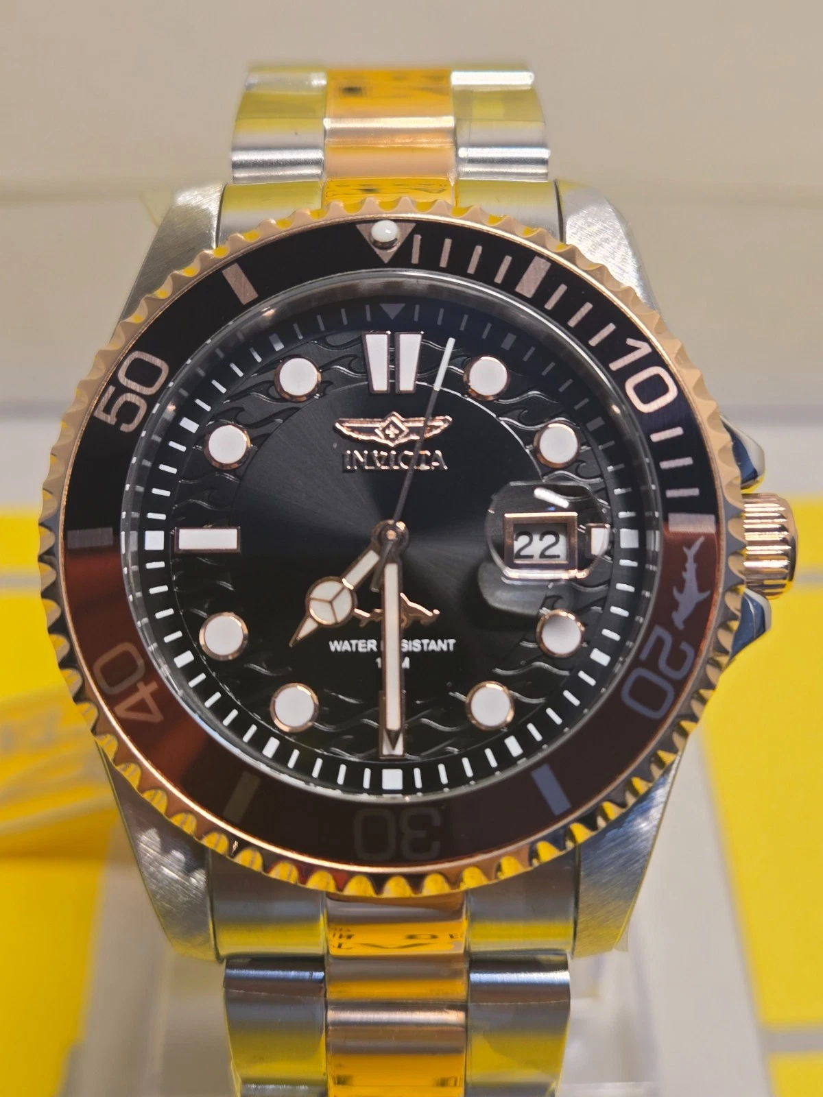El reloj Invicta Pro Diver para hombre es un reloj elegante y elegante con un impresionante diseño de oro rosa y acero. Con un tamaño de 43 mm, este reloj de pulsera es perfecto para hombres que buscan una combinación de elegancia y funcionalidad.