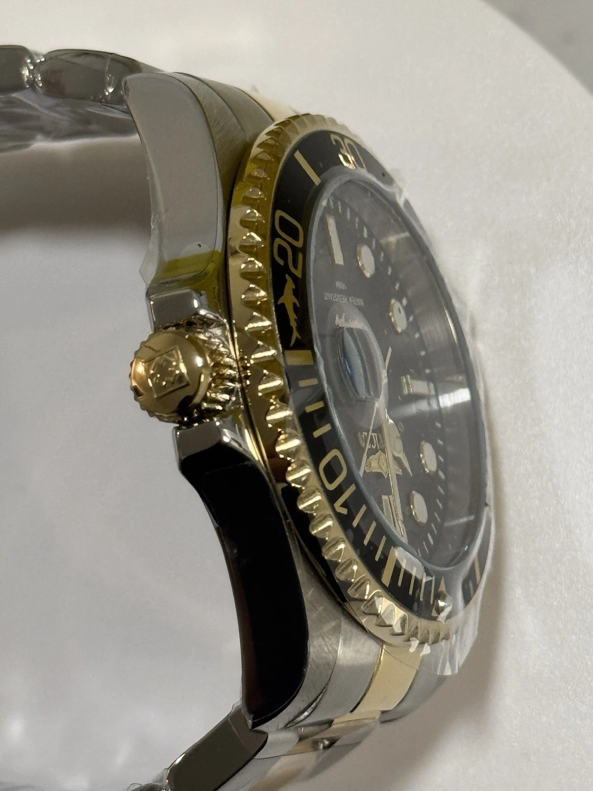 La impactante combinación de negro y dorado le da un aspecto audaz y lujoso que destaca entre la multitud. Su resistente construcción de acero inoxidable, combinada con un movimiento de alta precisión, garantiza una fiabilidad duradera, ya sea en la oficina, de paseo o en plena aventura.